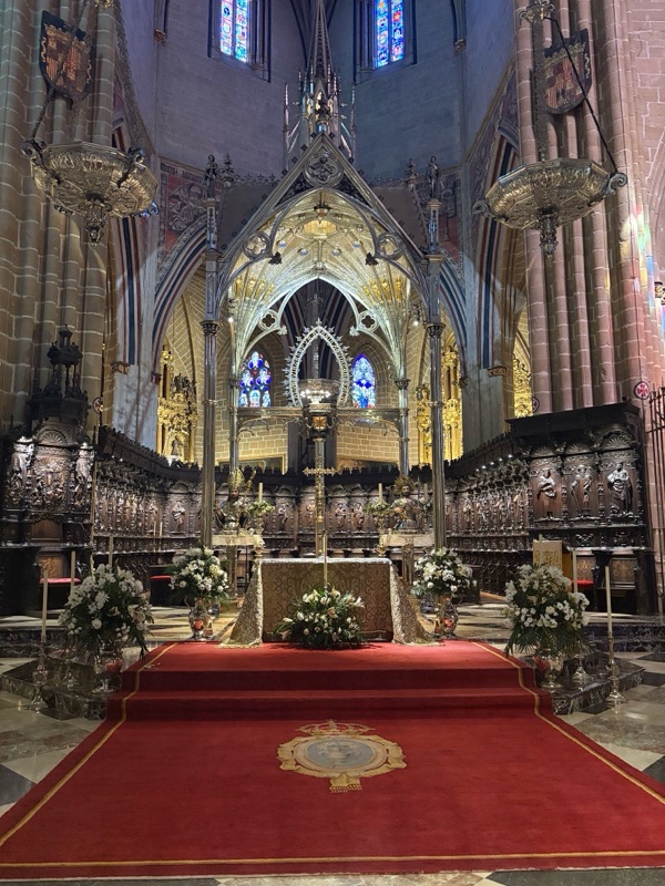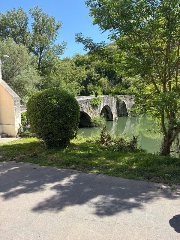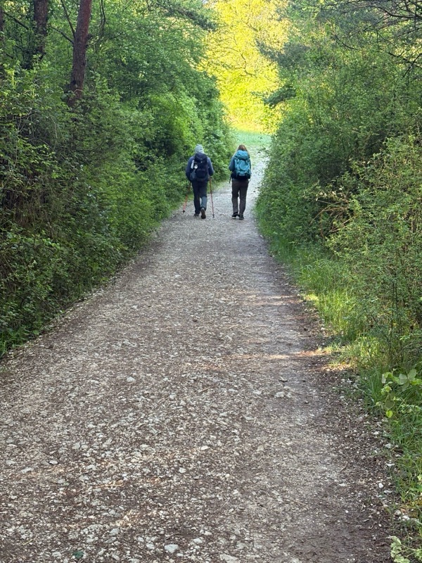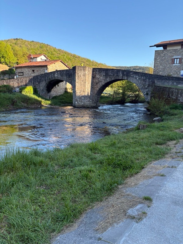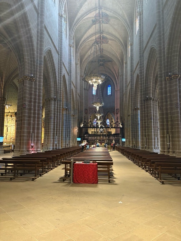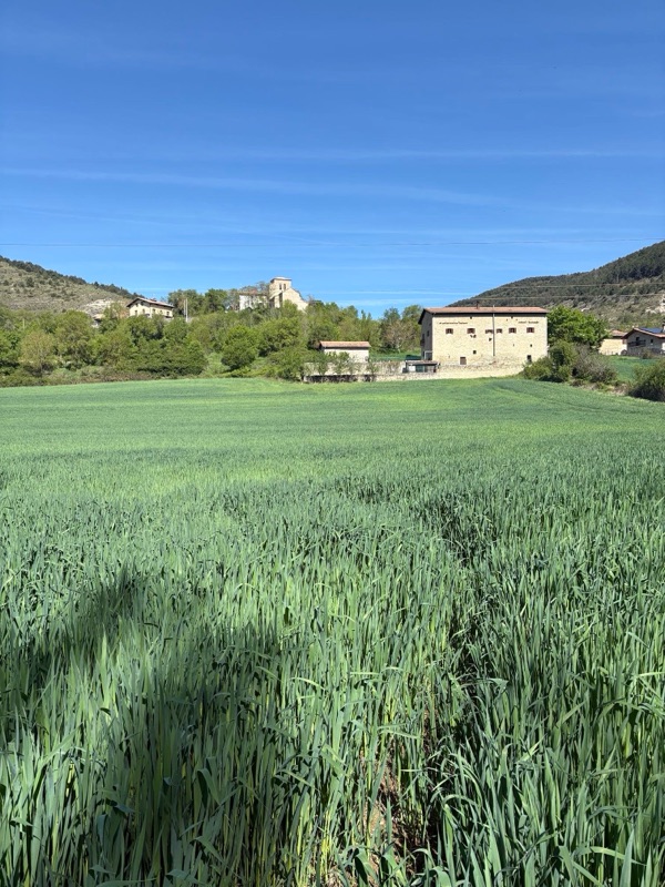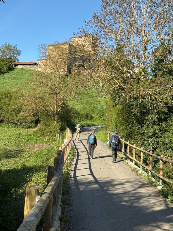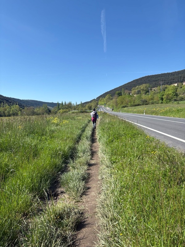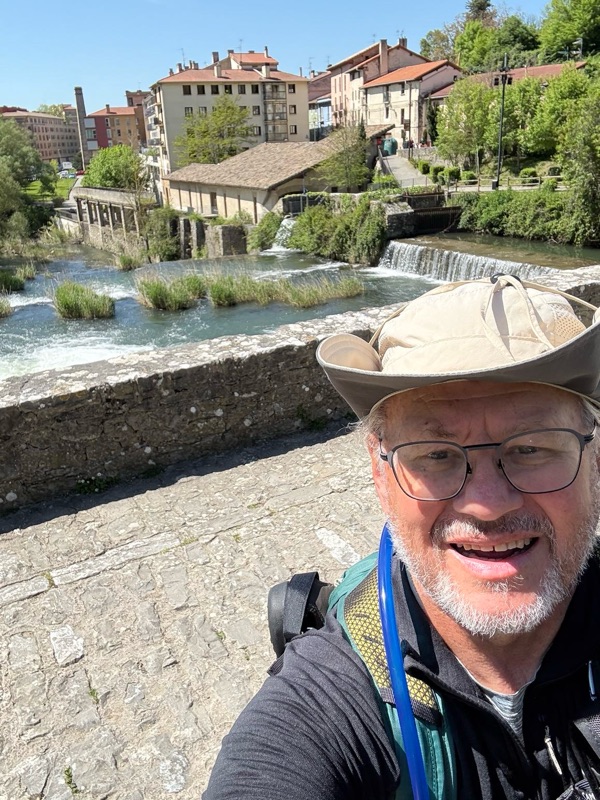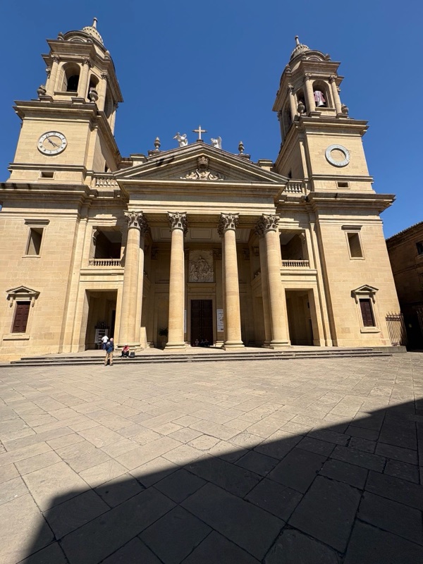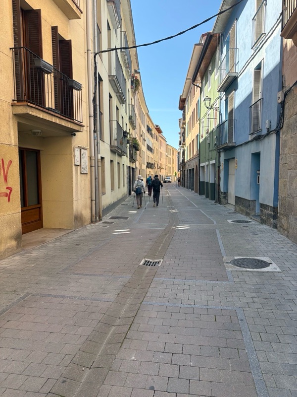 The church bells rang when I started again today; it was 8am. Today was an easier walk through the Arga Valley along the Arga River. The brochure said it was one of the most beautiful stretches on the Pilgrim Route and the weather was exceptional for the journey. I couldn’t help but hum and sing quietly, “All creatures of our God and King.” Another theme I thought about was “the modern meeting the ancient.” Never was this so true as we walked alongside N-135. As we walked you heard the birds chirps, the rushing of the river, the click-clack of walking poles, and the sounds of cars and trucks passing. Such an interesting cacophony of sound. I walked part of the day with two men from Denmark and a woman from Switzerland. So glad they all speak English. The Camino journey is part of their “bucket list.” Once again I pasted folks in the morning and was passed in the afternoon. After I arrived in Pamplona, I toured the Cathedral of Pamplona. Built over 900 years ago, it sits on top of the city. I found my first blister this afternoon. Doesn’t hurt, but I am now in doctor mode. It was beautiful today and tomorrow the temperature drops and we will walk in rain. Buen Camino