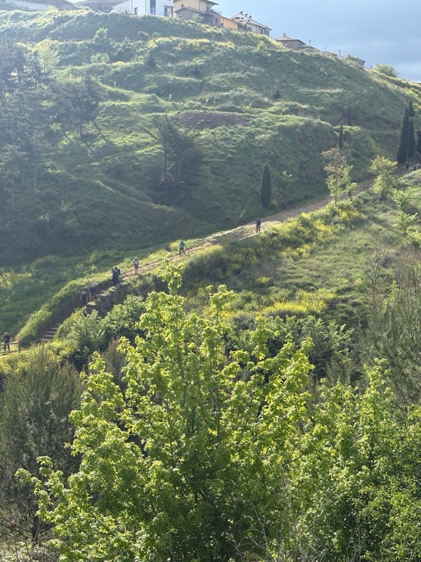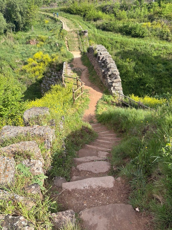 When I left the hotel the cock crowed. I thought it was an omen, but no, it was a rooster welcoming the day. It had nothing to do with me. The walk was less stressful today and I arrived at my new location at 1:30. For the most part the landscapes were once again beautiful and we started a transition today from the fields of grain to the vineyards and groves of olive trees. One of the highlights from me was walking on a road constructed by the Romans over 2100 years ago and crossing the bridge which they had constructed. Something still being used after 2000 years is just amazing. I met an English woman today and we had a wonderful conversation about America (she says on the Camino Americans and Australian are similar), baked beans (a staple for English breakfast but dying because of bad reviews from people like me), anchovies (absolutely delightful for her and wondering why Americans don’t appreciate them), and theology. She remarked that she had yet to meet a person on the Camino who was doing the journey to atone for their sins - one of the original reasons people traveled the Camino. I said that there are few in modernity that are burdened by their sins, and in our Protestant tradition we believe confession brings God’s forgiveness. I believe this but I wonderful if we have lost something in our discipleship when our sins are incidental and we have lost our concept of a Holy God. I thought about most of the day as I walked. I discovered a sign in one town which had the directions of the route going one way and an arrow to the bar another. Temptation on the Camino…on Sunday morning. Signs are very important on the Camino. To find your way you have to look for the sign. They are found on buildings, on cement posts, and in the cities they are found on medallions fixed to the sidewalk. You develop a pretty good eye for them. Also we pasted a church that celebrated its 1000 year birthday in 2020. Amazing! (Statue is founding pastor) Finally a quick confession: Last night I posted about the moving concert and said when the choir sang it was beautiful. I said they sang, “Kylie Ellison”. I hope God was laughing. They sang, “Kyrie Eleison - Lord have mercy”). Who ever Kylie Ellison is, I hope she will forgive me as well as God. I have over 600 kilometers to work that out with Him. Buen Camino