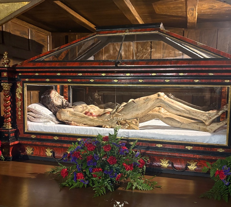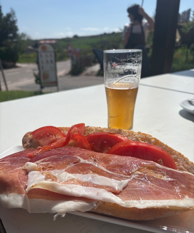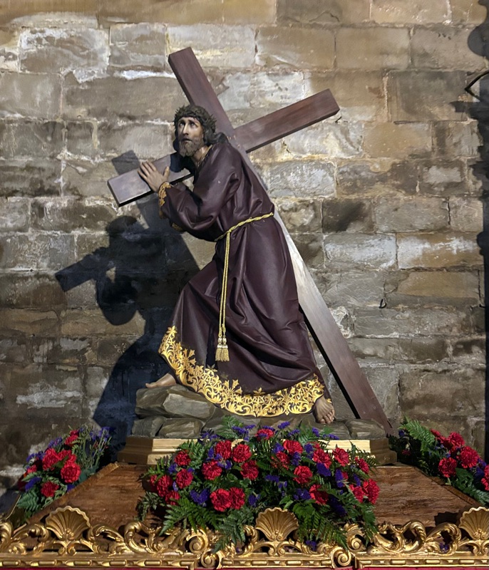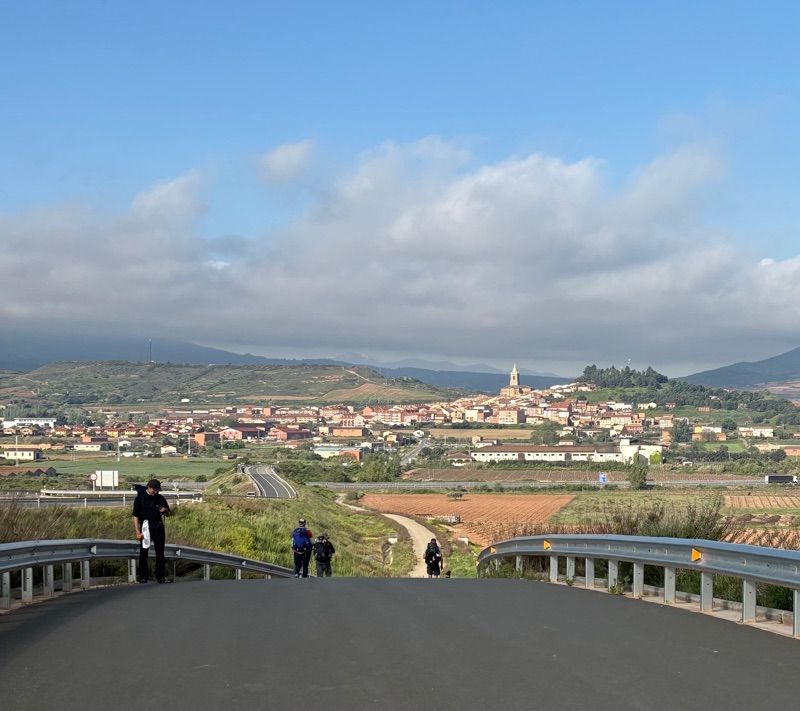 It was a long windy day. The last two days have some of the longest walks of my Camino - almost 30 km each day. I have been walking for one week and almost reached a quarter of a million steps, over 100 miles walking about 6 hours per day. I now have 3 blisters on my feet, but they are treatable and do not seem to bother me when walking. Each day on the Camino you meet new people as well as old friends. Sometimes conversations are long, sometimes short, but everyone keeps walking. Today I stopped for lunch. I normally don’t, but today it was needed. I had a ham sandwich with tomato and olive oil and a beer. I had been walking 4 1/2 hours when I stopped and it was very refreshing. To my Baptist friends, I don’t believe I am backsliding, but a cold beer after a hot, dry walk sure does taste good. (Maybe my penance will now be to walk more miles?). The landscape is just as beautiful but it is changing. We have now enter the “rioja” region of the country and you see more vineyards than wheat fields. Today I met a brown squirrel who was begging for a snack. He/she was very good at it and attracted a crowd. I also came along a fence line that had all sorts of crosses- some made from thorns. Pilgrims thinking about the Lord. I stopped and explored a beautiful church in Navarrete. I was very dark inside with only stain-glass to illuminate the sanctuary, but the camera caught some nice picture. There was a carved image of Jesus after taken down from the cross. Most interesting. I talked with a lady today from Holland who is alone and is taking time to walk the Camino in the middle of her career. She has 4 daughters and her husband is with them for a month while she walks. (That man is a saint). She told me she wanted to test herself to see if she could physically do this, but also she was walking to give thanks for all the blessings in her life. This was a uniquely beautiful perspective I hadn’t heard. Lord bless her with both strength and grace! Tomorrow is a little lighter day, so I will probably leave a little later. Buen Camino