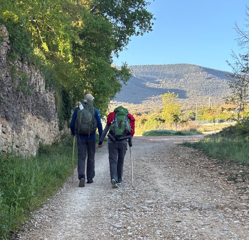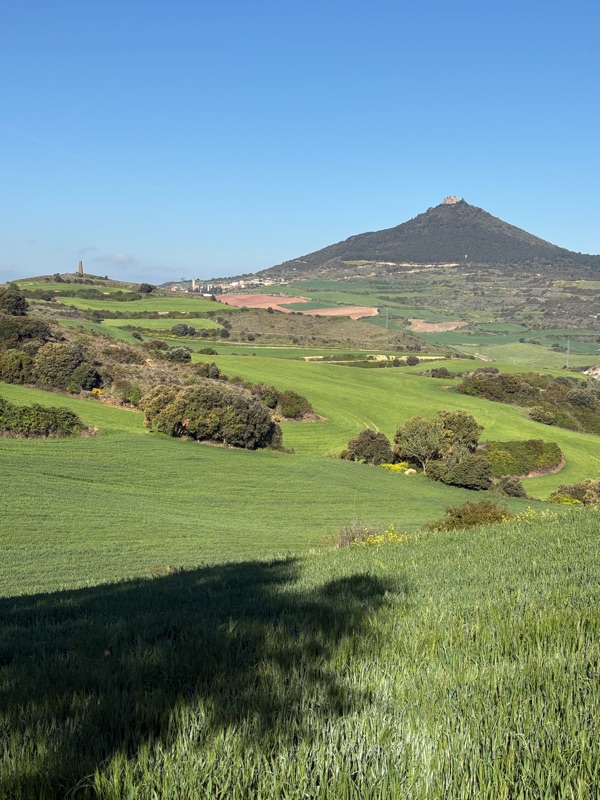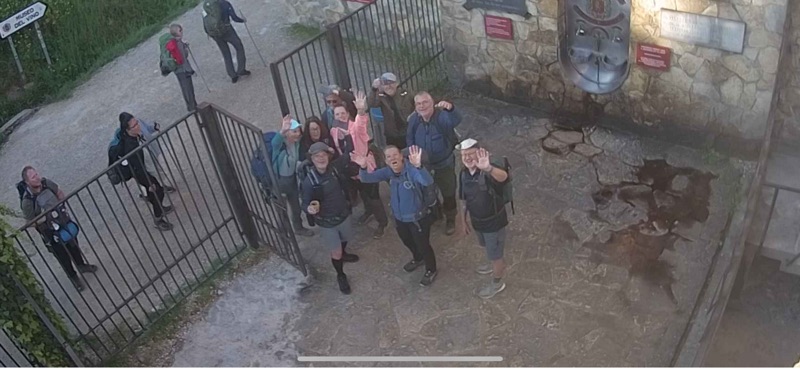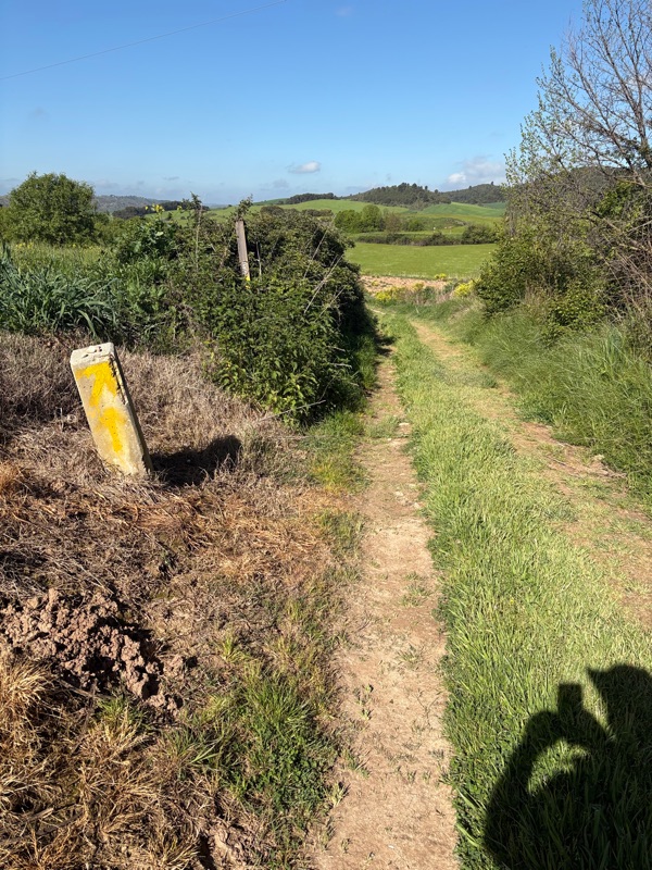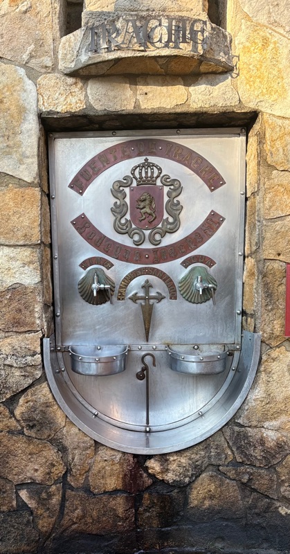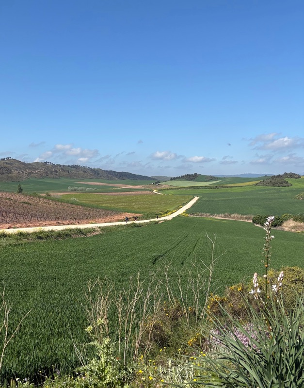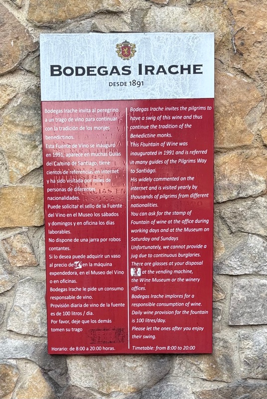 This morning started at 5:30 when the trash truck outside my room started its day. My grandson would have been happy. I had slept well - in bed at 8:45, so I rose slowly and stiffly a began my routine of packing and preparing for the day. After breakfast which included scrambled eggs and bacon, I was at 7:45 - my earliest start. The day was once again filled with beautiful landscapes and today brilliant sunshine. I am so grateful to God and called the beauty of the walk “A Beautiful Mercy.” It is very hard to get the beauty of the vistas into a photo. I once again walked for a while with my two Danish friends. Our first stop was the Bodega Irache which had an outdoor tap for wine. It was 8:30 and I decided not to partake. They said it was an “early vintage.” We did get our picture taken on the webcam and you will see it. From there we headed to Luquin. This wasn’t intentional - it was “The Road Less Traveled.” I don’t know where I missed it but I did. I was following sign for an “alternative route.” It got me to my destination so that was all that mattered. (By the way, others took the same route - it’s nice to know when you are lost your not alone.). I have added some additional pictures of directional signs and one to see it you can fine the marker. (It took me a while). At 11:00 I had a snack with another friend on the journey. She is from Valencia, Spain and tomorrow is her last day - back to work. I arrived at my destination in Los Arcos at 1:15 to find the power was out - an outage across Spain. I got a hot shower, but was out of Euros. The ATM didn’t work, the credit card didn’t work, so I pulled a few snacks from my backpack for dinner. It was still light at 8:30 so I wrote this post in my journal to transcribe for tomorrow. I hope power comes back on. What if the cell phone can’t be charged. The world is lost. What will I do…Get up and walk the Camino!