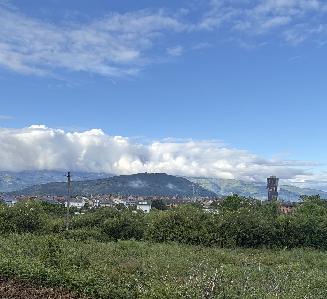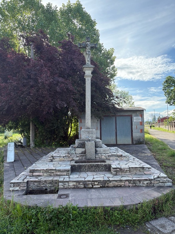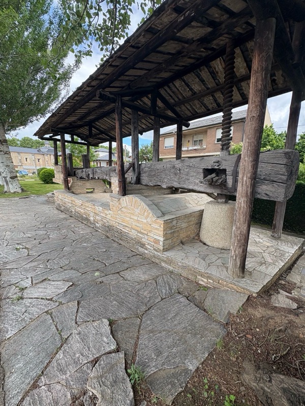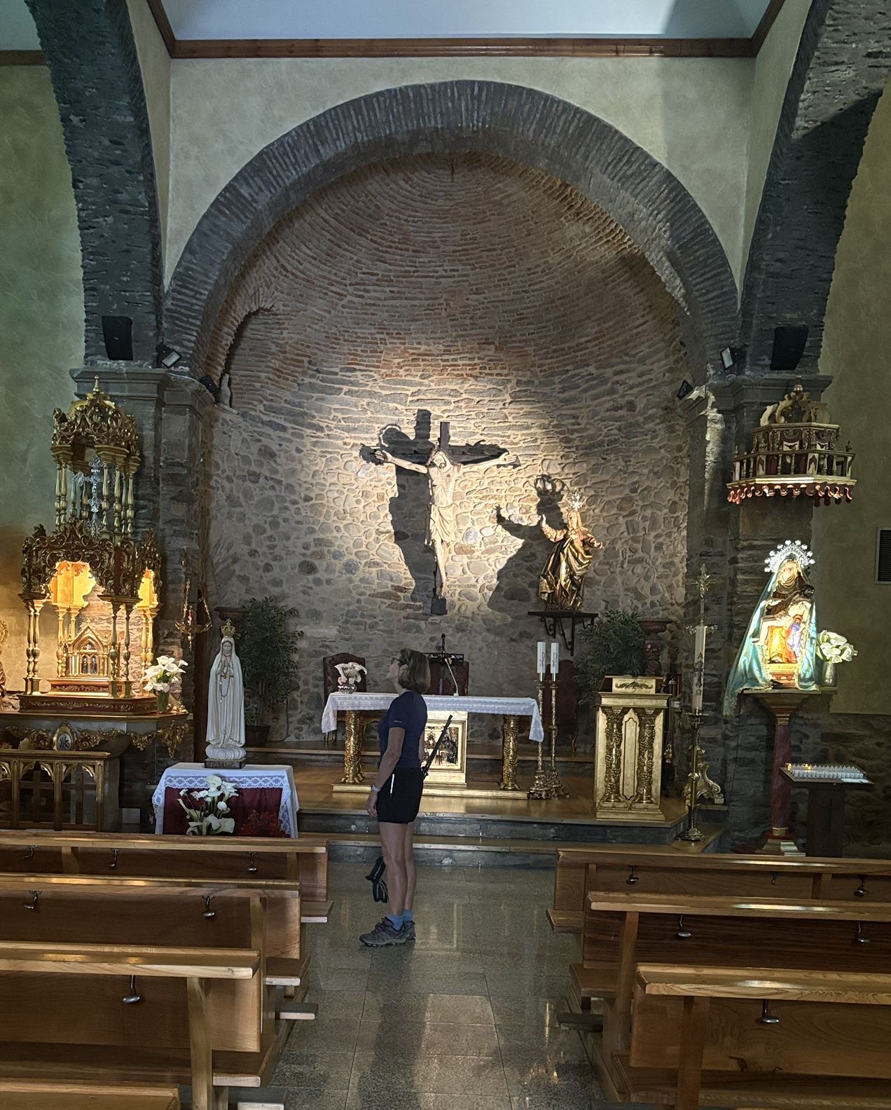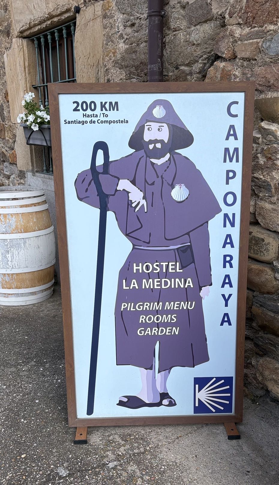Today was a fairly easy walk. We are slowly making our way to Santiago. Tomorrow I will make my way to a town called Las Herrerias before I make a major climb on Wednesday to O Cebreiro in the region of Galicia. Today we entered another wine area that looks a lot like the Paso Robles area. Beautiful rolling hills with lush fields. The rains have been very good this year, everything is green and lots of flowers blooming. Had an interesting conversation with a Frenchman who spoke English. I asked how he spoke such good English and he said, “because I worked with a bloody English company.” A perfect French answer. The town I arrived at tonight is Villafranca de Bierzo which could pass for a Swiss or Italian ski town. Mountains on all sides. Here are some of the sights for today.