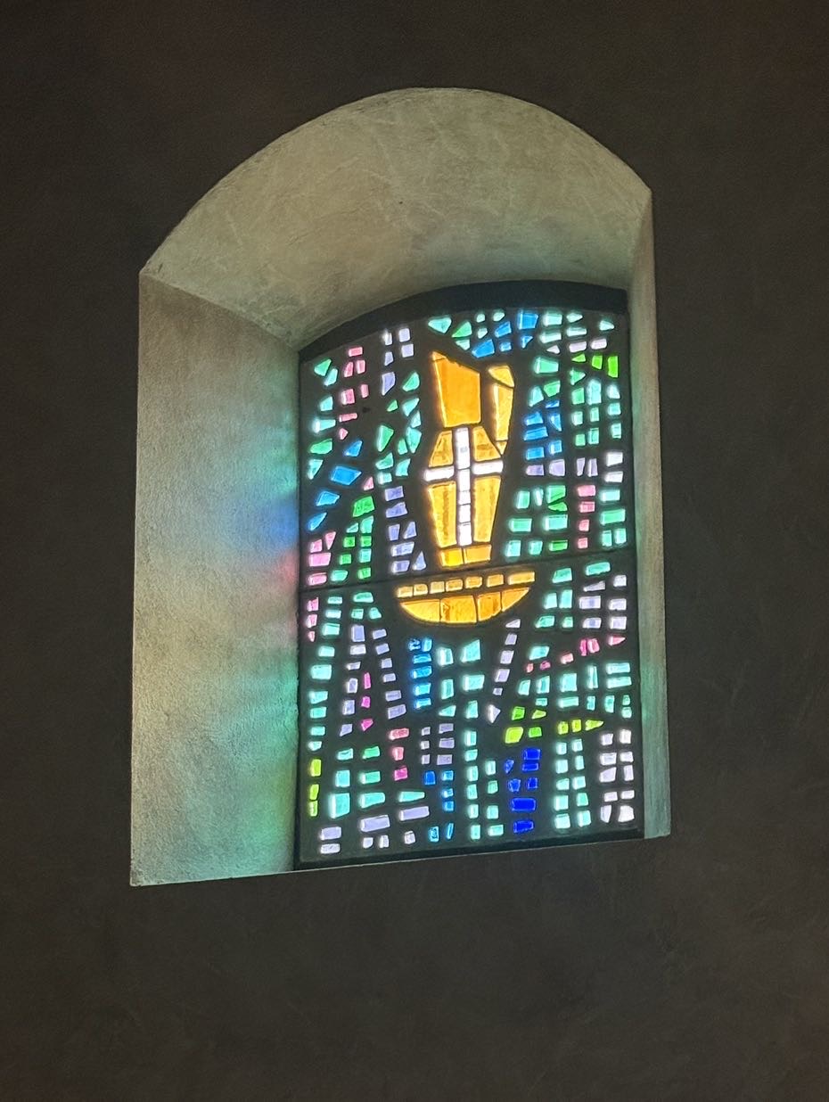 It was actually very dim so the illumination of Jesus on the cross stood out even more than photo
