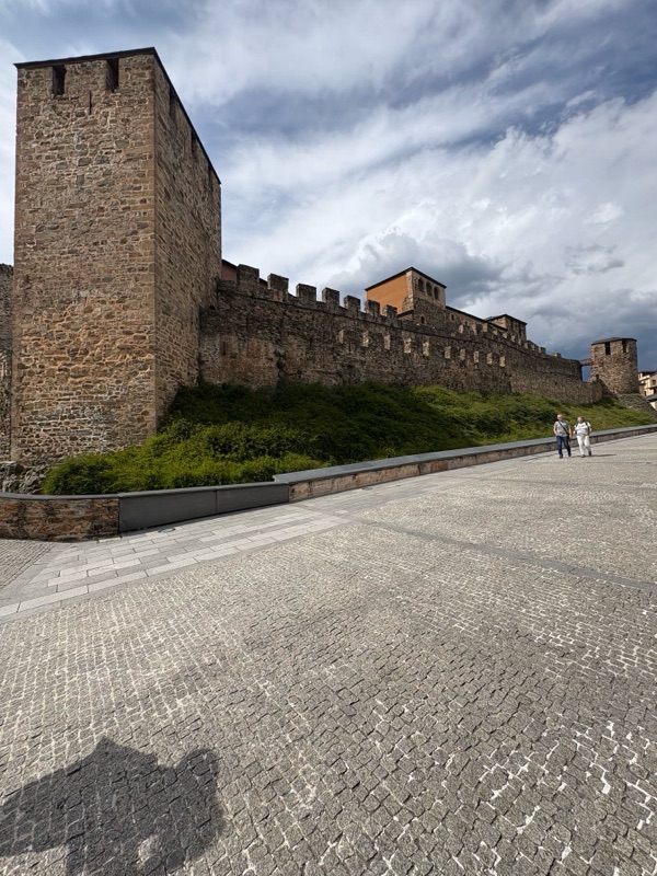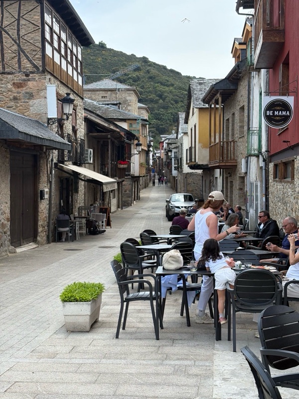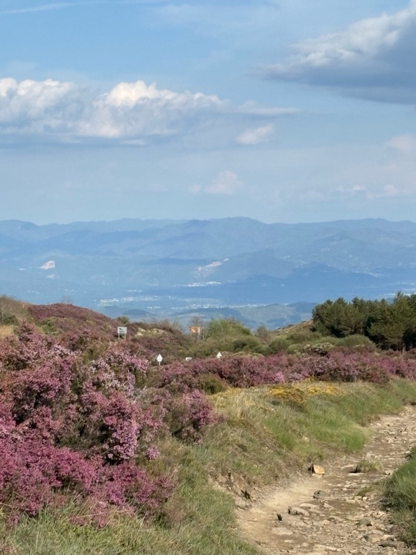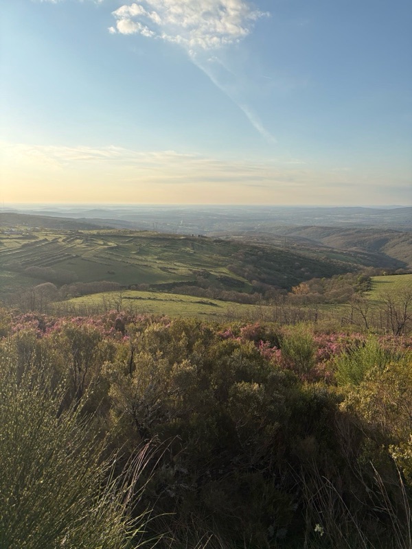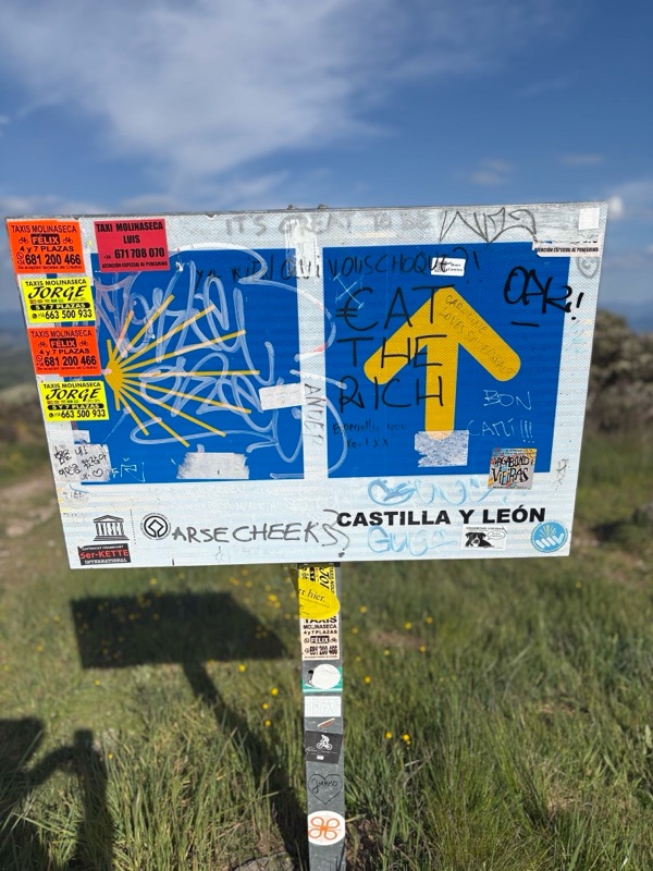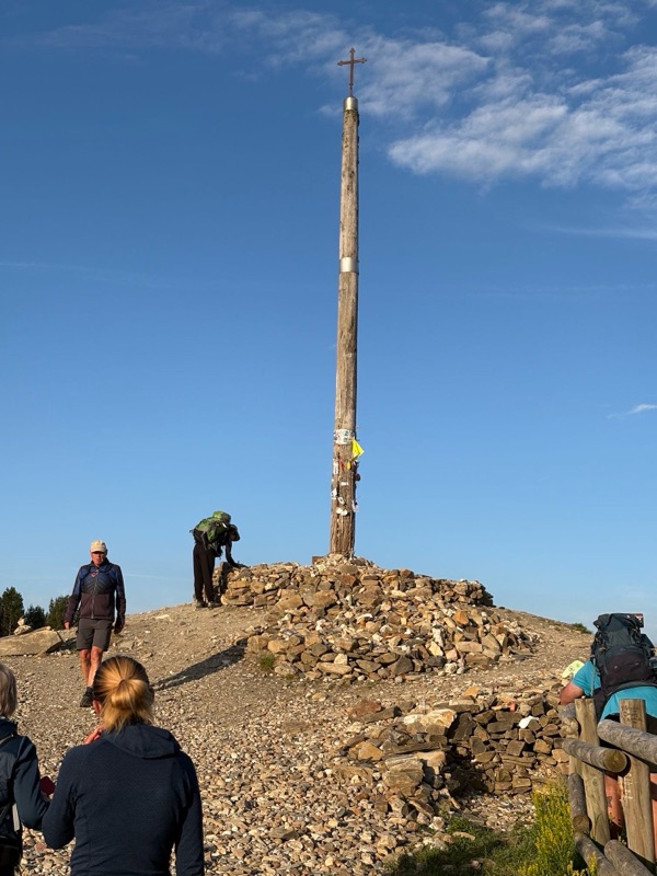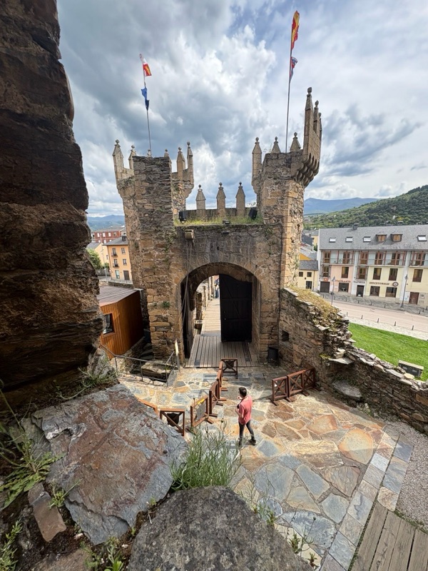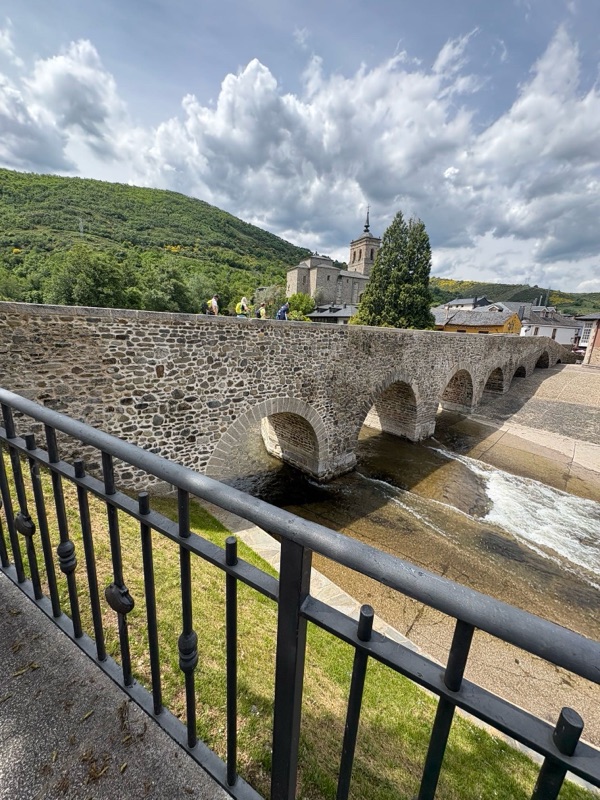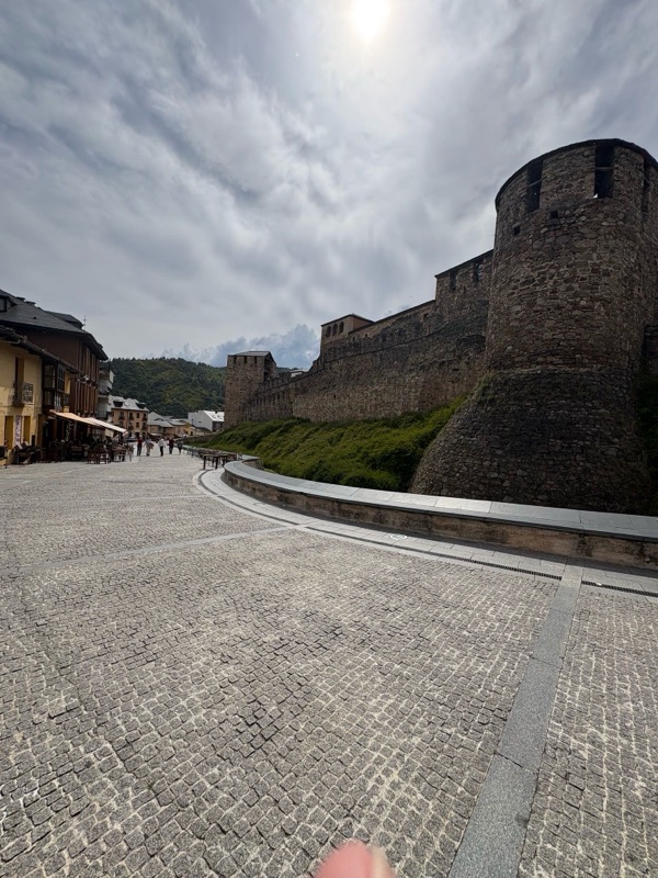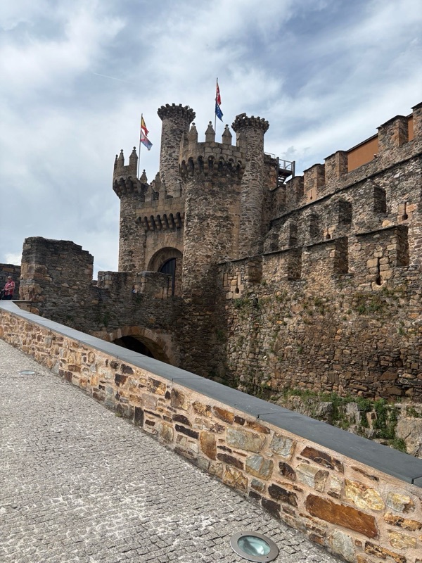 This morning I left Foncebadon about 7:30 and headed for Cruz de Ferro. It was a beautiful morning as the sun was rising and walk wasn’t too bad. Arriving at Cruz de Ferro is a holy experience. When you see all the stones that have been deposited at the foot of that cross representing the hopes and dreams, heartaches and prayers it is awe inspiring. At least while I was there, there was a quietness like you were in a Cathedral. I laid stones of my grandchildren I had carried from California, said a prayer and headed out. The day was long. All the elevation I climbed yesterday and walked down today. I think I like uphills better, but then it nice to have something to complain about while you are admiring the Camino.🙂. I met a guy from Frances and tells me it is easier walking on road instead of rock path. He is right, a few minutes later he stops a car and gets a ride. It is easier riding than walking the road or a rocky path😆. i missed a sign and took the long way around Ponferrada, but my step count is rising - over 750,000. This evening I visited a castle and the scope of it was immense. I have some picks, but the really don’t do it justice. Buen Camino