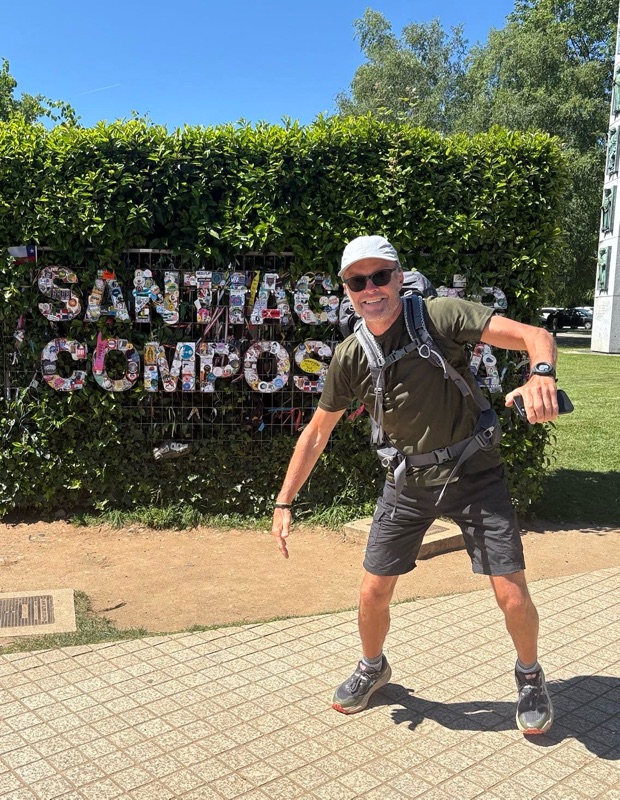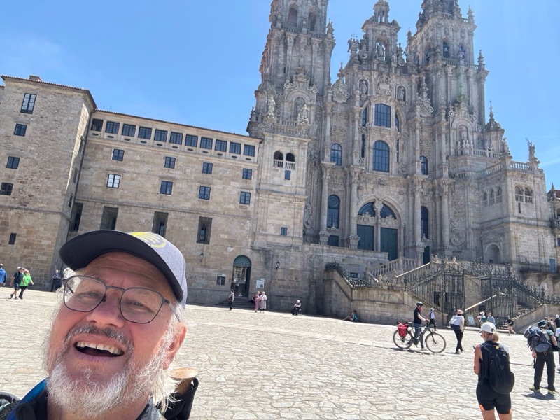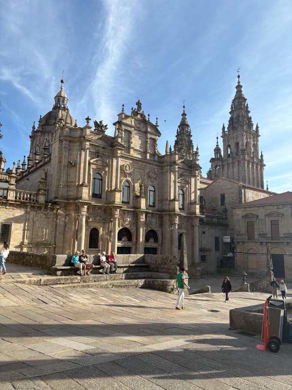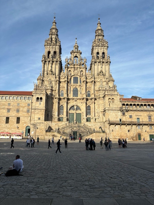 The final day is not far, just 13 miles, but the thoughts and emotions are big. There are still a few hills to climb and there are more pilgrims on the trail, but mostly I was just grateful for strength, this great opportunity, friendship on the trail and back in California. Thank you so much for following along. The final route was really beautiful until you got into the city and the crowds took over. Santiago is a busy city and people are coming from all over the world. The square in front of the Cathedral is full of emotion as people enter and see this journey completed. Today as we were walking in, I met a couple from Singapore who I had met on the first day. We both had traveled over 500 miles and met again on the final day. It was so fun walking again with Henrik and Lone from Denmark. We laughed, cried, high fived our way to the Cathedral. At dinner tonight, I met 3 ladies who I had just met 2 days ago at breakfast. We are all grateful. Such big smiles. Tomorrow I leave for Paris to see Chrissy! Thank you again and Buen Camino!