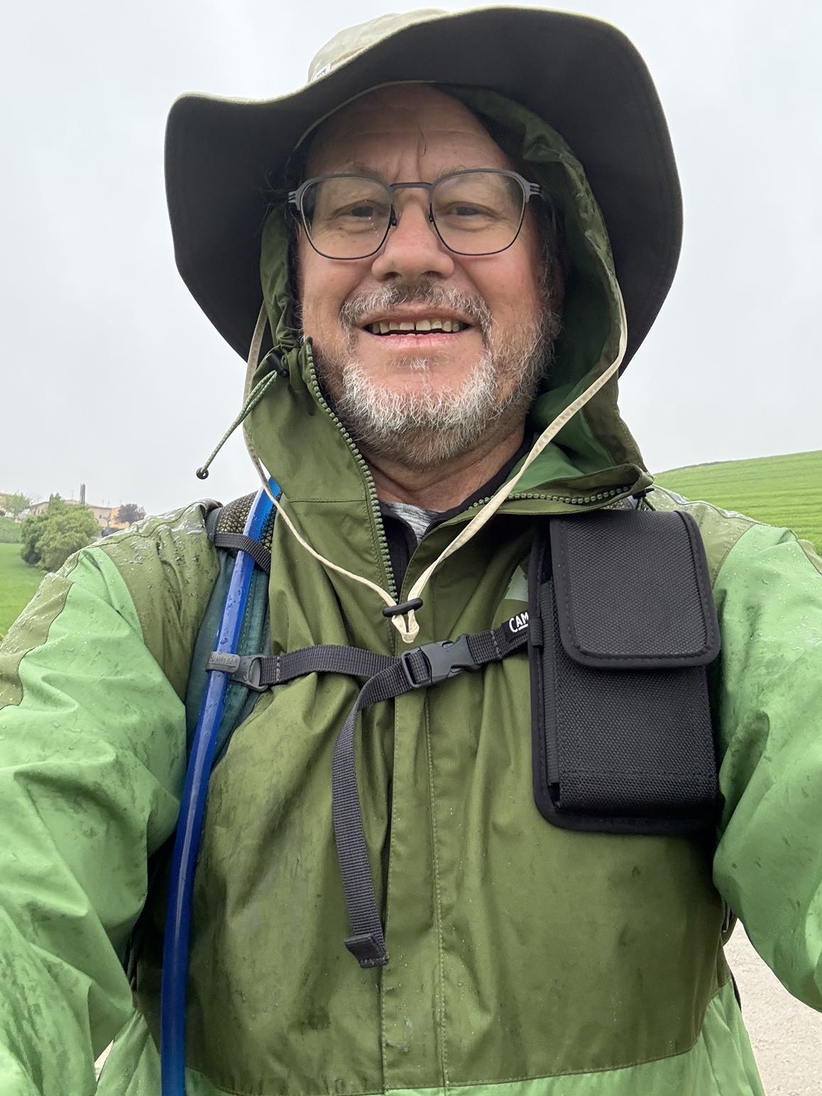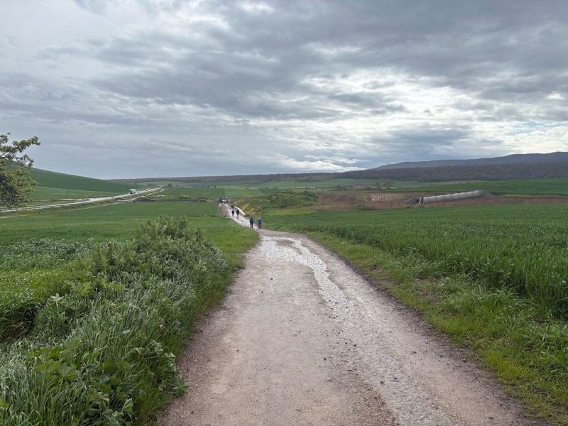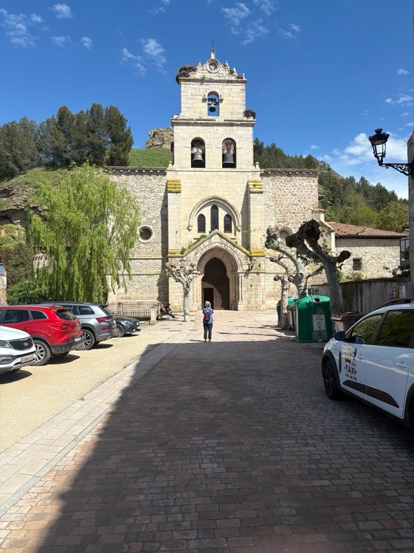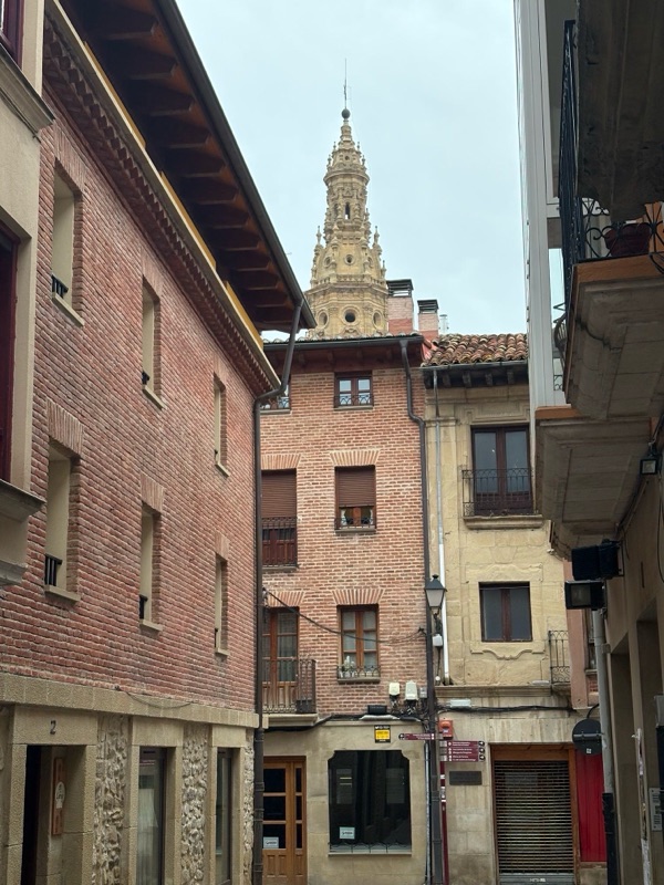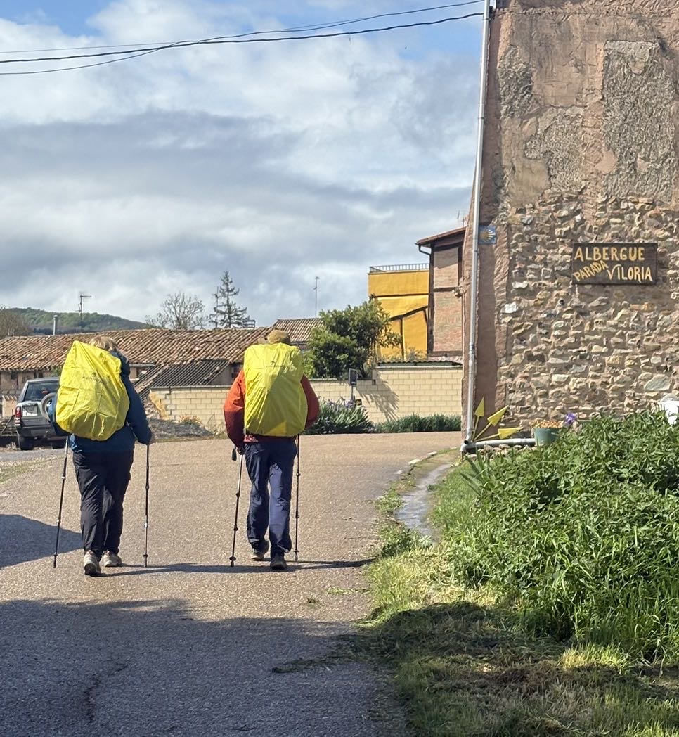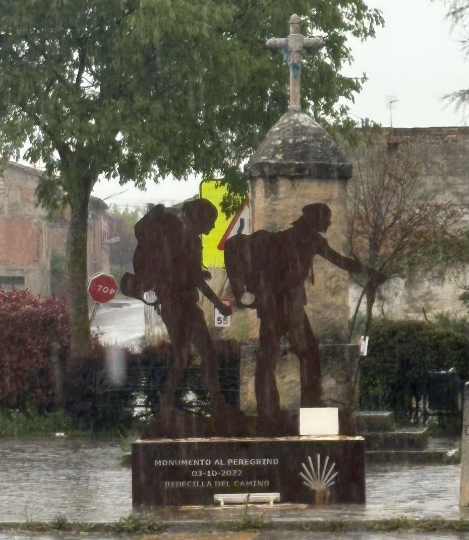 Leaving Santo Domingo de la Calzada, it seemed like it would a nice day. There were overcast skies but the temperature was fine. But the clouds were building as we climbed into the small town of Granon and there were sprinkles, so I thought I would be prepared and use my poncho for the first time. Come to find out, I had bought a backpack cover instead of a poncho. Trying to save a few bucks and I got the wrong gear. Important to remember to check your gear before you leave. I had a rain coat and a backpack cover with a hat, how bad could it be. Famous last words. Leaving Granon, I heard the first ominous signs of thunder and as we walked they got louder and more frequent. When we finally crested the hill which said we were entering the region called Castillo y Leon, the heavens opened, rain poured with thunder and lightening. My walking shorts, shoe, and socks were soaked with 10 minutes, but my biggest concern was the lightening since we were out in the open. (A note: when they say Gore-Tex is waterproof that only applies to light and intermittent rain, not the gullywasher.) I finally found shelter with others in the town of Redecilla del Camino, and waited out the thunder and lightening. We walk for while a longer until about 4 kilometers before our final destination, when it started raining again. So I was dry, then wet, then drying, followed by a second soaking. The room in Belorado felt good an hopefully everything will be dry for tomorrow. Glad I brought a second set of shoes. Buen Camino.