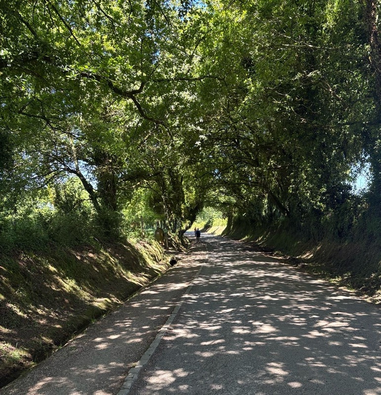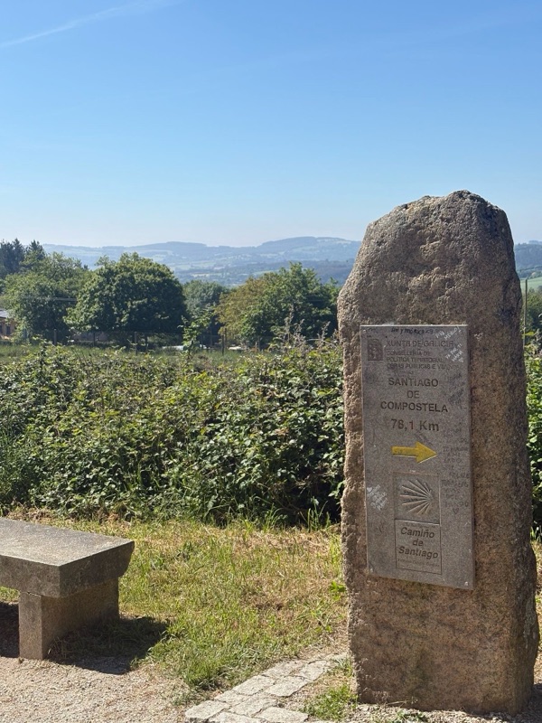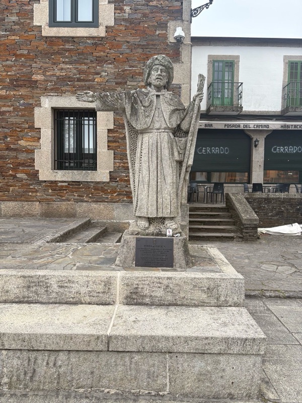 It felt like a very long day. I have a small cold and between the cold fog, soreness, and fatigue, the day long. But there were wonderful encouragements along the way. First I stopped for a snack this morning and pulled out some Oreos. Could you call them “ manna from heaven?” Probably not, but they gave me a sugar pick me up that I needed. As I was ready to leave an 81 year old man sat down and we began to talk. It was his 2nd Camino and both sons who had started with him had to go back to work. I said he needed a third son, and he replied he had a daughter, but she wasn’t joining him. I told him he was doing great; we walked for a while, then he took another break. He is such an inspiration. I took more breaks today than most days, arrived in Palis de Rei later than normal, but met up with some Danish friends for dinner. We laughter and reminisced about the Camino, may walk together tomorrow, and will have a celebratory dinner in Santiago on Tuesday night. Then we went to a pilgrimage mass together. The church was full of pilgrims from all over the world and the priest spoke in Spanish and English. It was a wonderful service and a great way to end the week and prepare for the final push to Santiago. Three days left and today I passed 1,000,000 steps in 29 days of walking. Tomorrow is another long day and then 2 days of shorter walks into Santiago. Buen Camino!