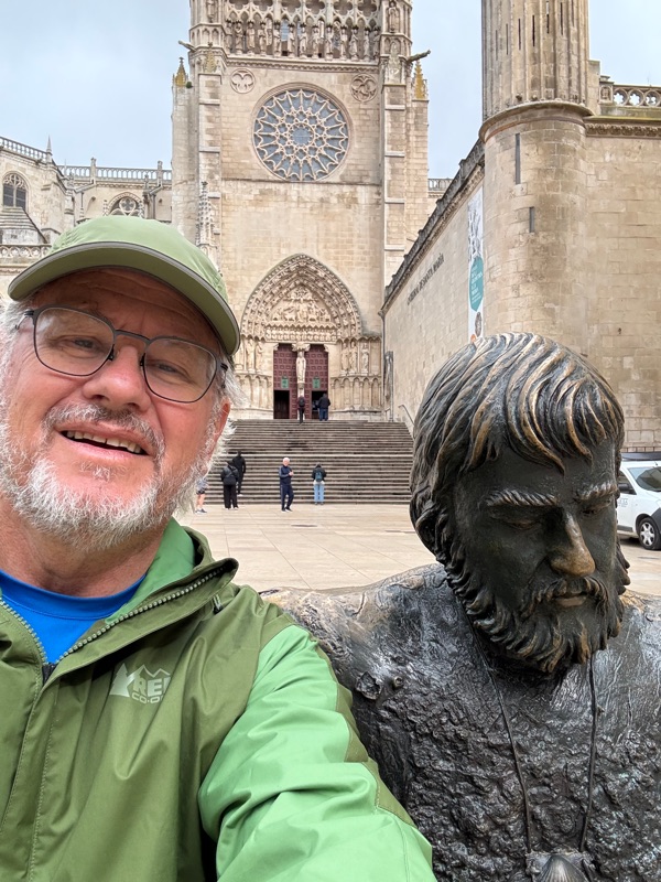 Finally, a pilgrim out front. consented to take a selfie with me. I’ll bet I get to Santiago first (we are beginning to look a lot alike)