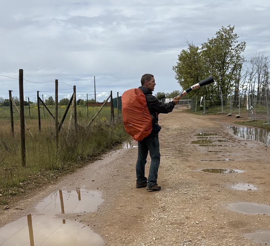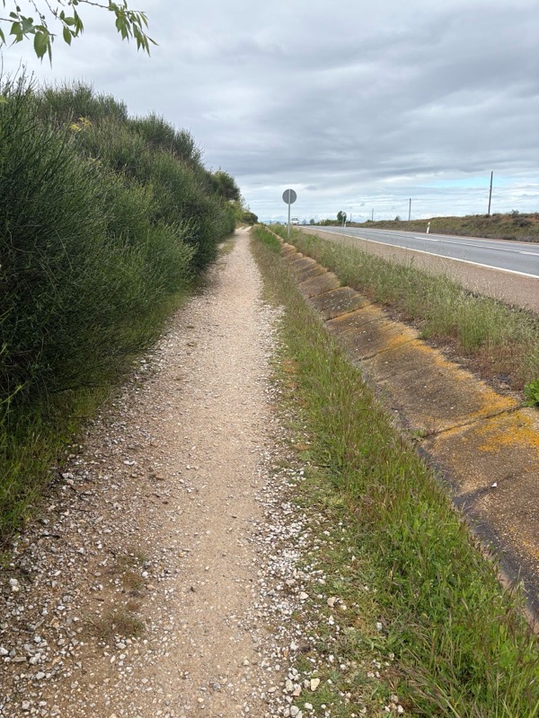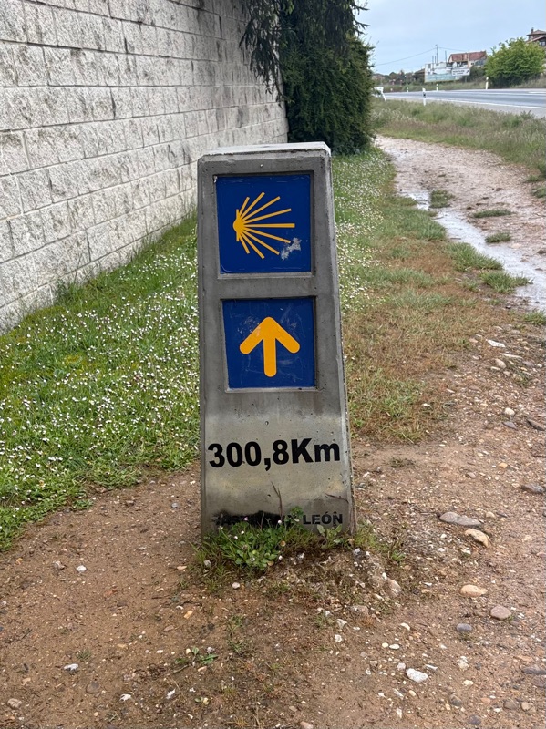 Today was the longest walk I will have on the Camino - almost 33km, over 20 miles. It started out in the rain this morning, actually it was more of a drizzle and ended in sunshine. A half an hour after I arrived at my destination, it poured so I was glad to be inside. Most of the day, I walked along the highway. Lots of traffic leaving the city, but less as we got further away. We did have puddles to navigate. The landscape is changing from the rich farm fields to rocky field and lots of brush. It seems like there are more small farms, very few vistas. I had my strangest conversation today with a guy who was carrying a didgeridoo, an Australian Aboriginal instrument. I asked if he was from Australia and said, “No, Germany.” Which invited another question, “How does a German learn to play this instrument?” He said he learned during Covid while living in Spain and now is street musician as he walks through Europe. He seems like a “professional walker”. Not a lucrative job, but you meet a lot of people. At any rate he asked where I was from and I said, “The United States”. He said I could pass for Australian, so I say, “Buen Camino and Good Day Mate!”