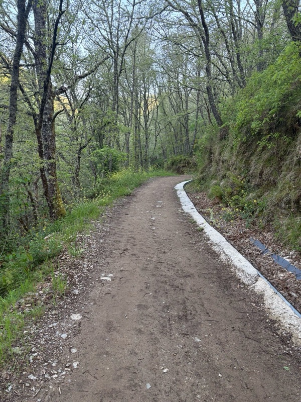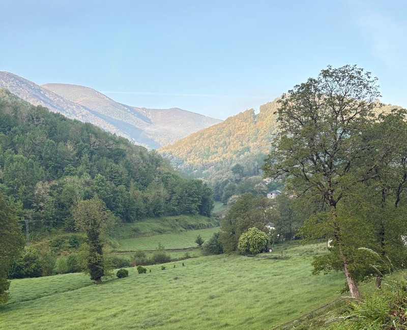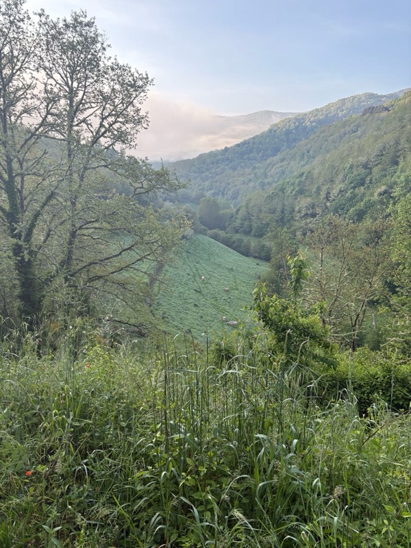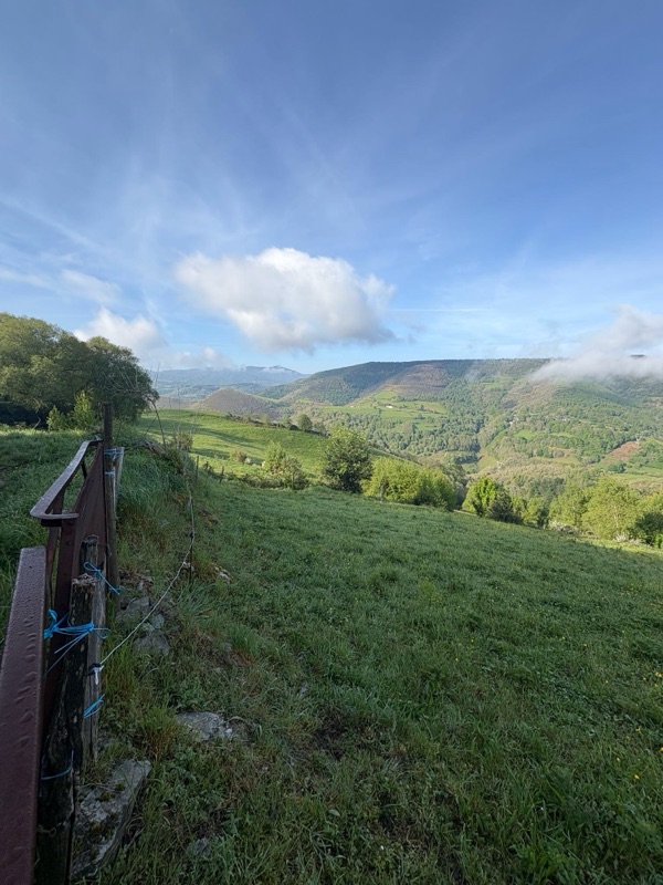 One of the songs I like to play each morning is This Good Day by Fernando Ortega. The song reminds me that each day is a gift of God and to appreciate and enjoy it. I needed that this morning as I left for a long walk-hike, the longest of my Camino journey. I was up at 6 and out the door at 7am. Today I walked for 7 1/2 hours over 34km (21 miles). I ascended over 2,200 feet and by the end of the walk had come back down. (Vega de Valcarce-2,163ft; Alto do Pipo-4,388ft; Triacastela-2,157ft). Along the way I met two men over 80 years old making the walk; one from Australia and other from England with his daughter. (Kellye, Marisa, James are you up for this in 15 years?). They were all such a delight. The weather was perfect for a long walk with cool weather and clouds up on the mountains most of the day. When I finally arrived I was tired, but happy for another good day. Under 150km left, just 6 days till I get to Santiago. Here are some sights of the day. Buen Camino!